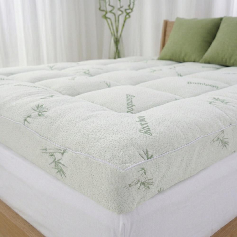 - تهوية ممتازة: بفضل ألياف البامبو الطبيعية، يتميز اللباد بقدرته على امتصاص الرطوبة وتنظيم درجة الحرارة، مما يضمن لك نومًا منعشًا طوال الليل.